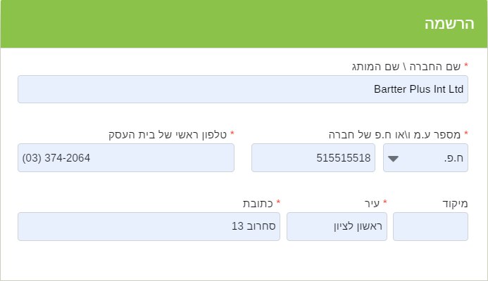 1. תחילה יש להירשם ל - barterplus בתהליך פשוט וקצר.