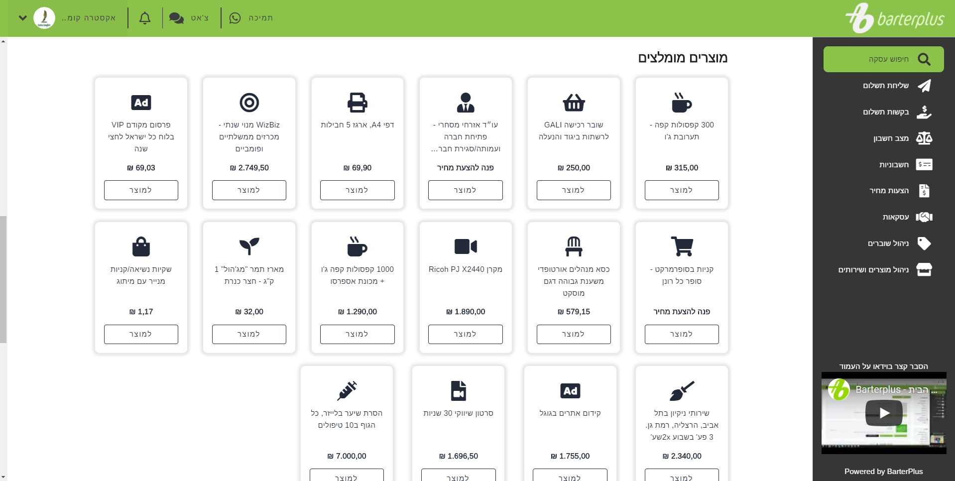 barterplus היא פלטפורמה דיגיטלית המאפשרת לעסקים קטנים ובינוניים לבצע עסקאות סחר חליפין (מוצרים ושירותים תמורת מוצרים ושירותים אחרים), בקהילה המורכבת מאלפי עסקים בתחומים מגוונים מכל רחבי הארץ.